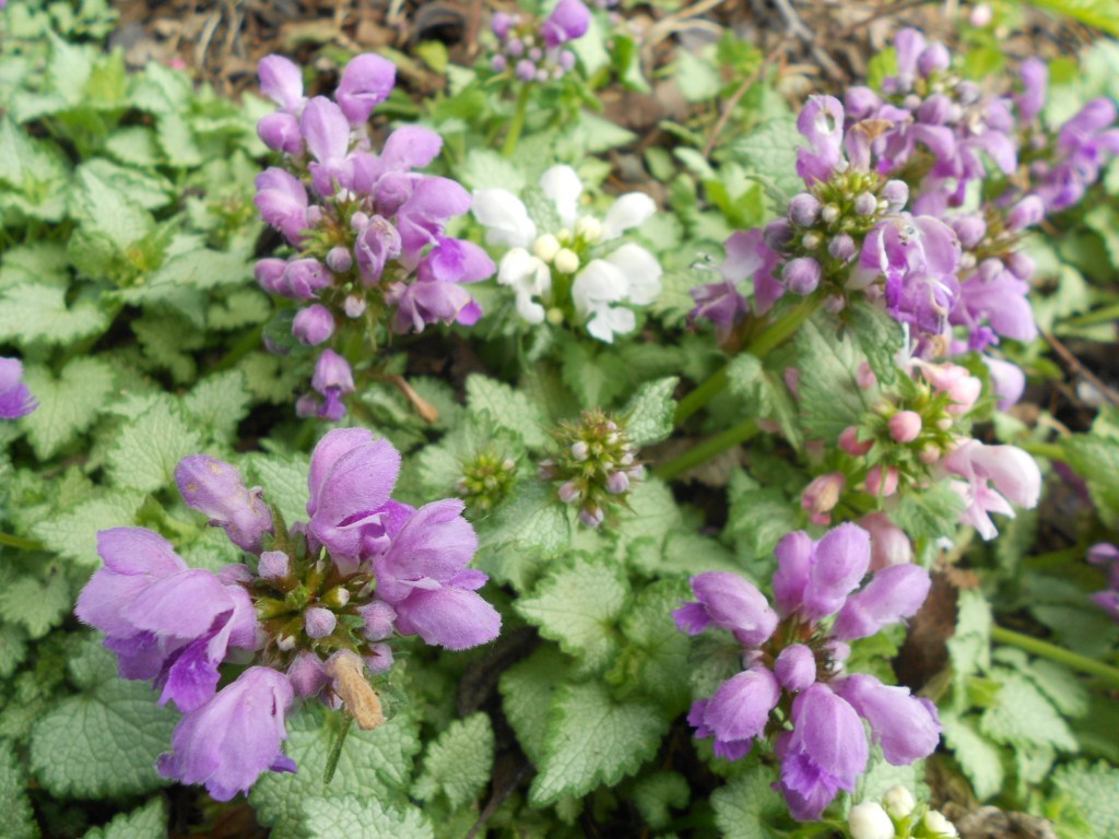 Does anyone remember Thrills gum – the one that tastes like soap? Well, these lamiums (spotted dead-nettles) always remind me of that product because they are exactly the Thrills shade of purple. I bought a few plants and the next year, some cropped up self-seeded, blooming white! Sometimes seed doesn’t always run ‘true’ and it reverts to an earlier strain. By the year after that, the purple and white had crossed – and now I have pink as well! Some garden surprises are good ones…