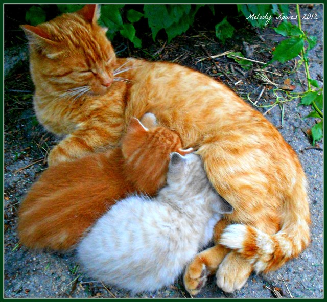 One actually belongs to a friend – it is an orphan who needs a mama for a while – and our mama cat will take anybody who needs a little bit of TLC. She is a very gracious little mama!